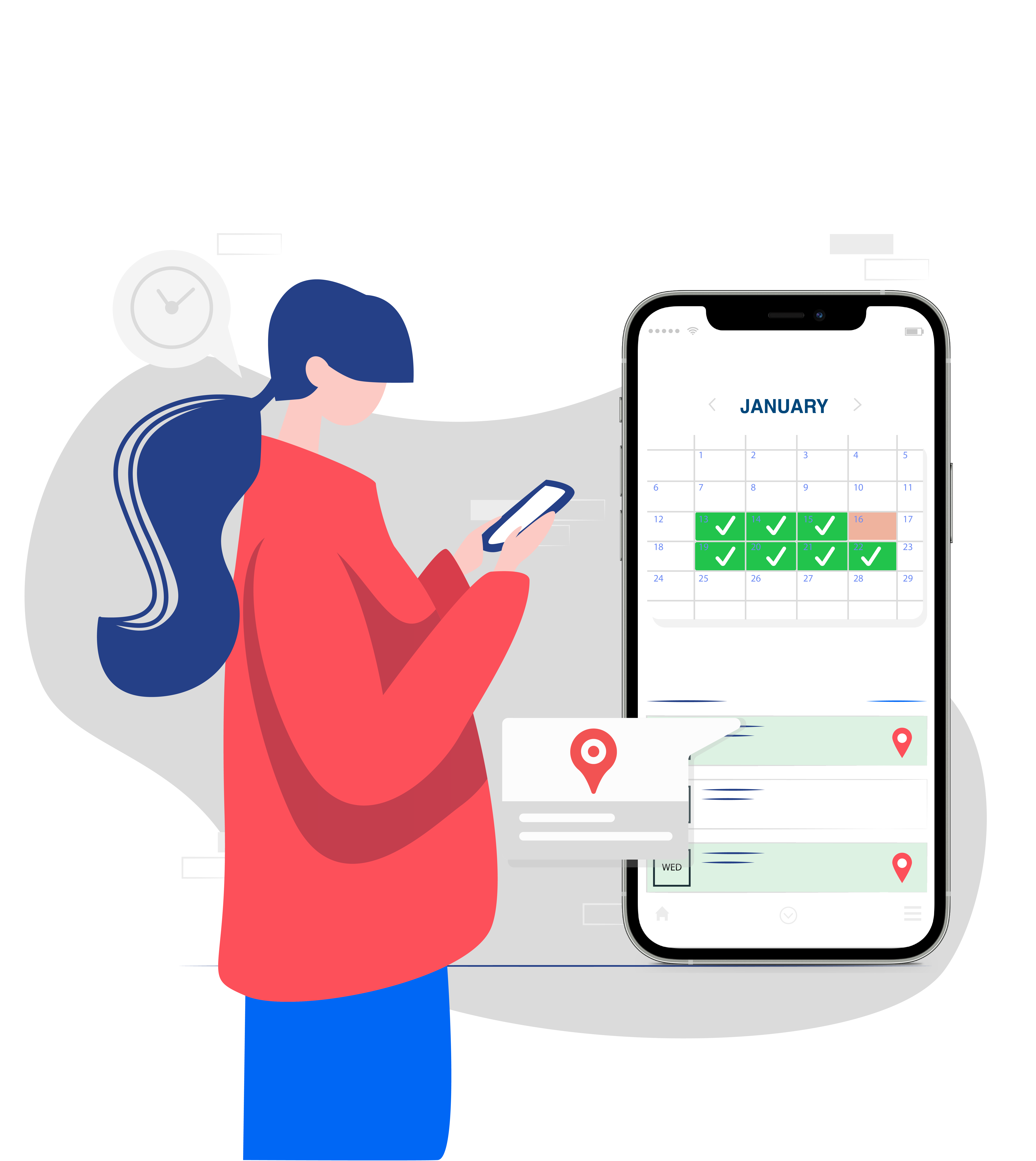 Every check-in is timestamped and synced. No manual entry.