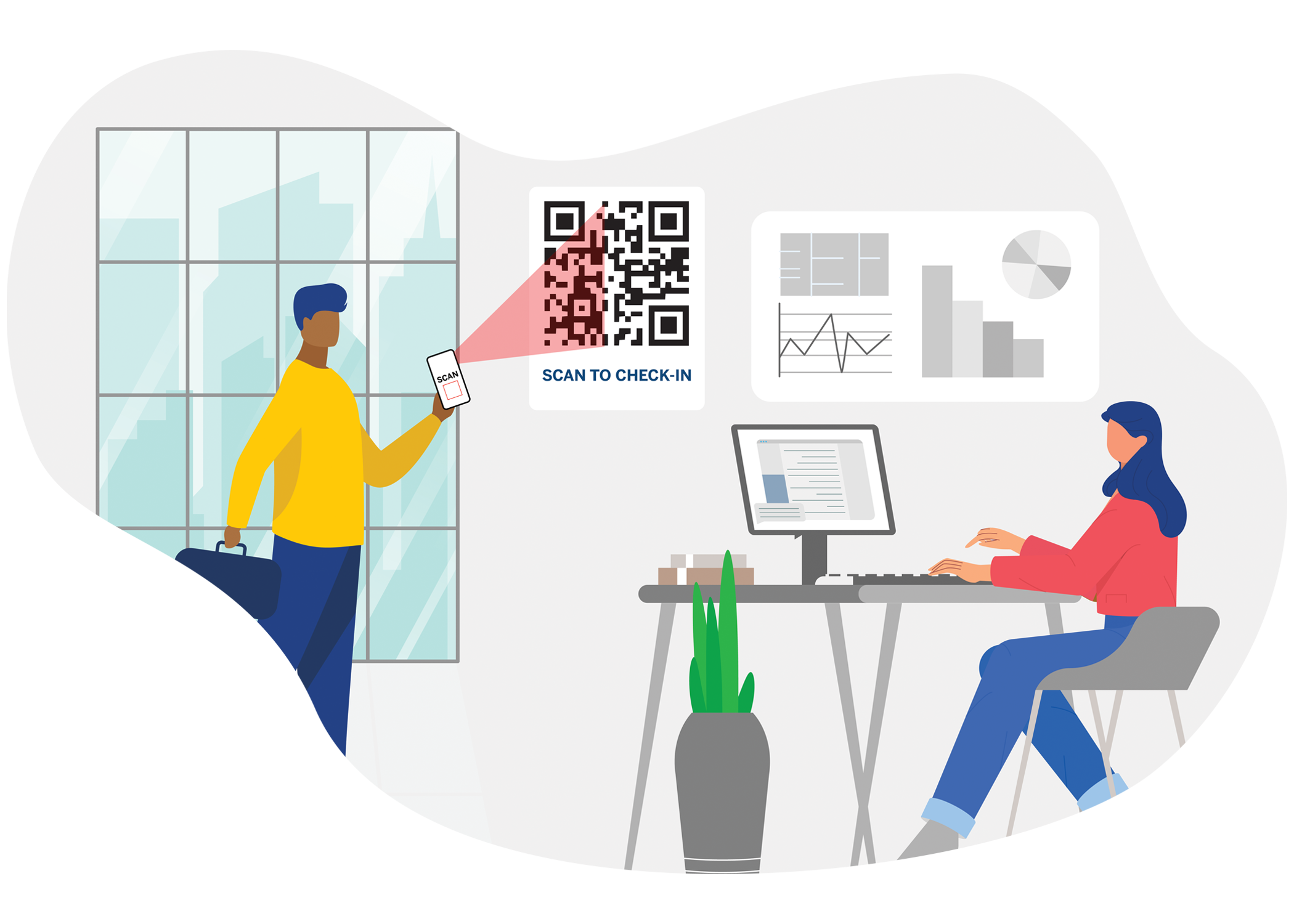 Employees check in via QR codes, iPad kiosks, badge scans, or digital signatures. Records are timestamped and exportable as Excel or PDF for audits and compliance.