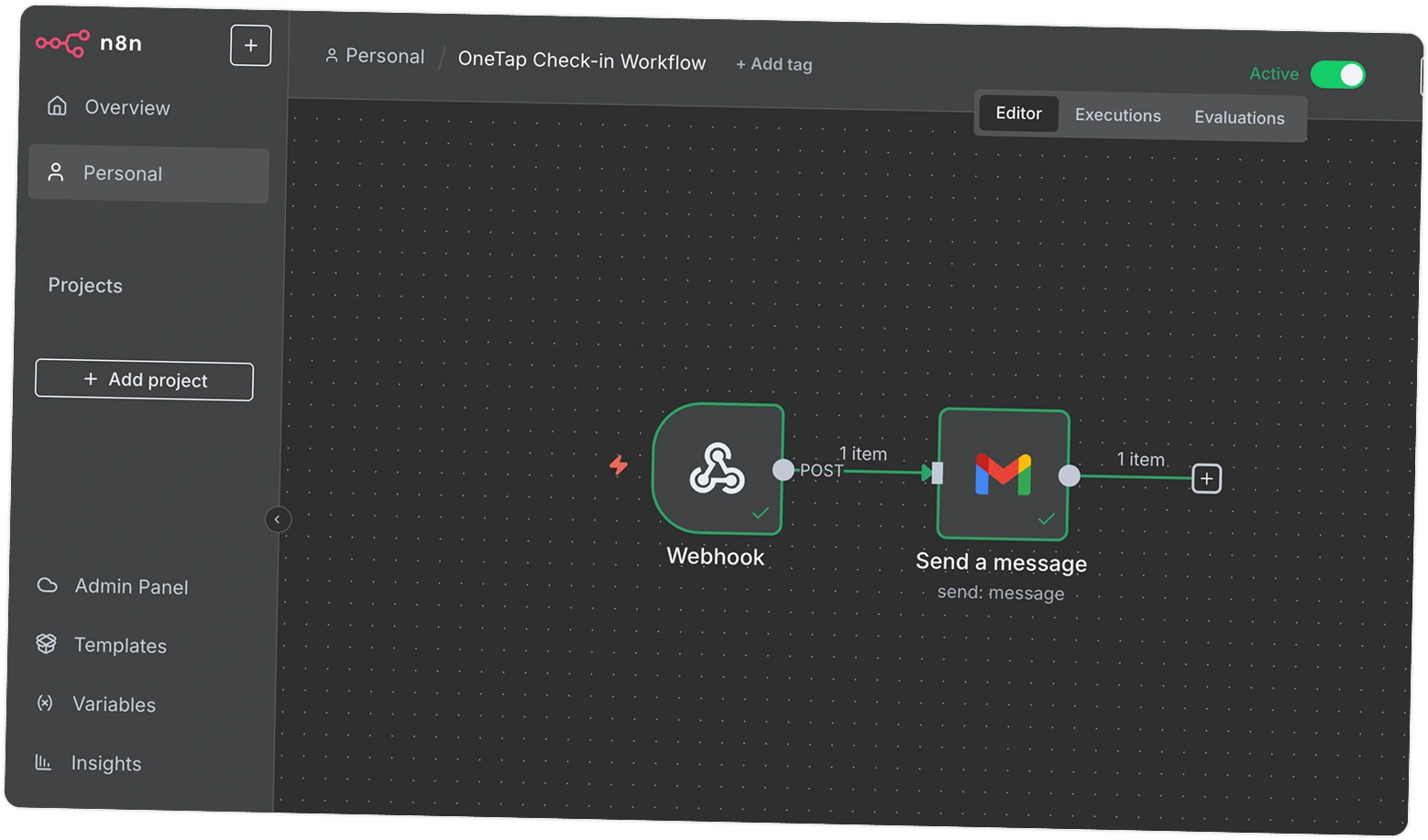 Connect OneTap to any app and create custom automation sequences with n8n’s powerful visual editor and webhook integration.